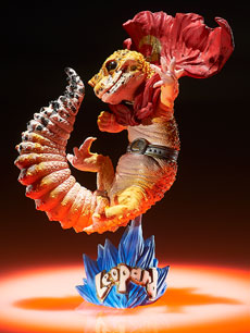 ゲッコー戦士レオパルド from WSCアーティスト自身による創作キャラクター ■ 商品販売価格 巧い、カワイイ、カッコイイ。爬虫類やその造形物にまるで興味のないような人からすると荒木のこの創作キャラクターのすごさにすぐには気付けないかもしれませんが、元ネタとなったレオパードゲッコー(日本名/ヒョウモントカゲモドキ)の完璧なディテール再現と、いまにも本当に動き出しそうな優れた躍動感、さらに、しっかりとその場の“風”を感じさせる絶妙なマントのなびかせ方などをよくよく観察していくと、同作品が醸し出している「じつに堅実、かつ、まだまだこの先の伸びしろを十二分に感じさせる基礎的な造形力の高さ」が読み解けるのではないでしょうか? |