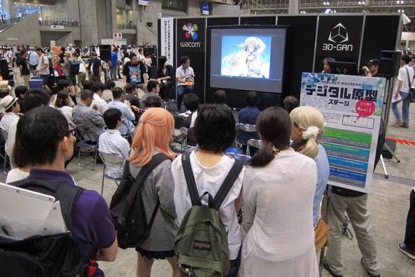 ▲WSC#083 隙間の人は3D-GANが主体となって行っている3Dステージ『デジタル原型の先駆者に続け! ZBrushモデラー ディスカッション』(16時~17時)に、榊 馨氏(Wonderful Works)、柳生敏之氏(アルター)と共に登壇。登壇前は「緊張する~っ!」を連発していましたが、彼にとっては一生忘れることのないワンフェスになったかもしれません