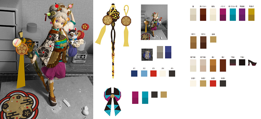 そして、「Noaの独断でそれが進められている訳ではなく、フィギュアの原型ができあがった時点でココハチがそれをデジカメで撮影し、その画像に対し彼がイメージしていたカラーリングを画像加工ソフトを使い彩色。そうして作成した彩色画像をベースとしてNoaと共に色相を検討していく」という旨も、アーティスト解説内で説明しました。